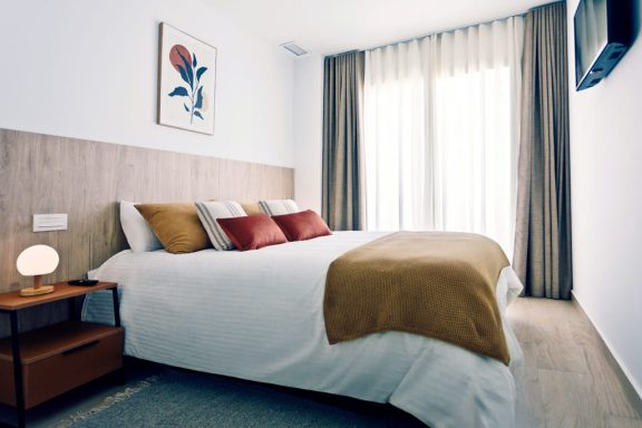 Modernas y luminosas viviendas turísticas con capacidad para de 1 a 6 personas, situadas en pleno centro de Torrevieja, a 130 metros del paseo marítimo y la playa. Todas nuestras viviendas turísticas disponen de dos habitaciones con cama de matrimonio (140×200 y 150×200). Los apartamentos disponen de sofá-cama. Cocinas totalmente equipadas y dos baños.Mes de entrada y Mes de fianza.